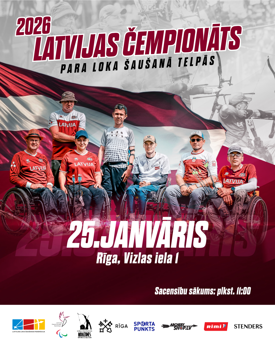 25. janvārī no plkst. 11.00 līdz 16.00 loka šaušanas sporta kluba “Amazones” ziemas sporta bāzē Rīgā, Vizlas ielā 1, norisināsies Latvijas čempionāts para loka šaušanā telpās 2026. Par čempiona titulu sacentīsies Latvijas labākie para loka šāvēji no dažādiem Latvijas reģioniem.